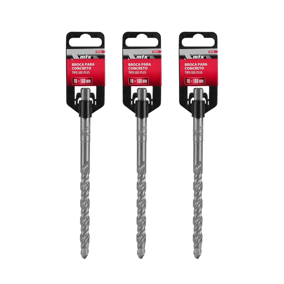 Kit 3 Unid Broca Concreto SDS Plus MTX Profissional 10mm x 160mm