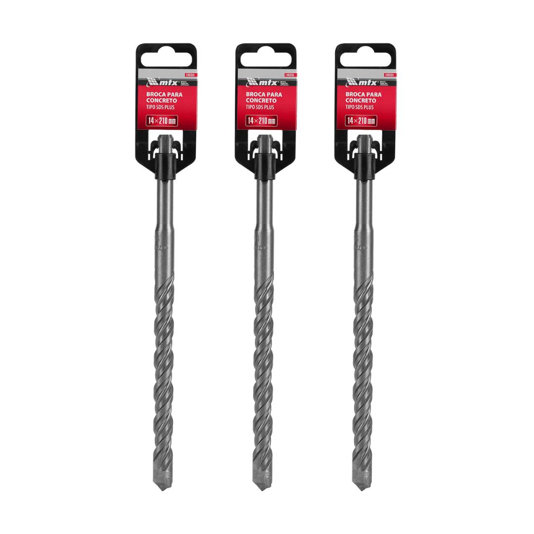 Kit 3 Unid Broca Concreto SDS Plus MTX Profissional 14mm x 210mm