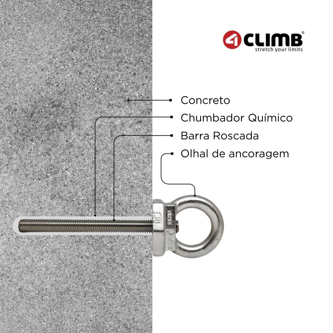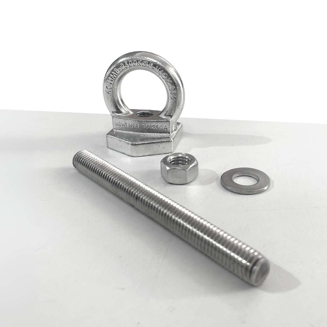 Kit 4 Unidades de Olhal de Ancoragem + 4 Barras 14cm 1/2 Polegada Inox Linha De Vida 25kn + BRINDE Porcas e Arruelas